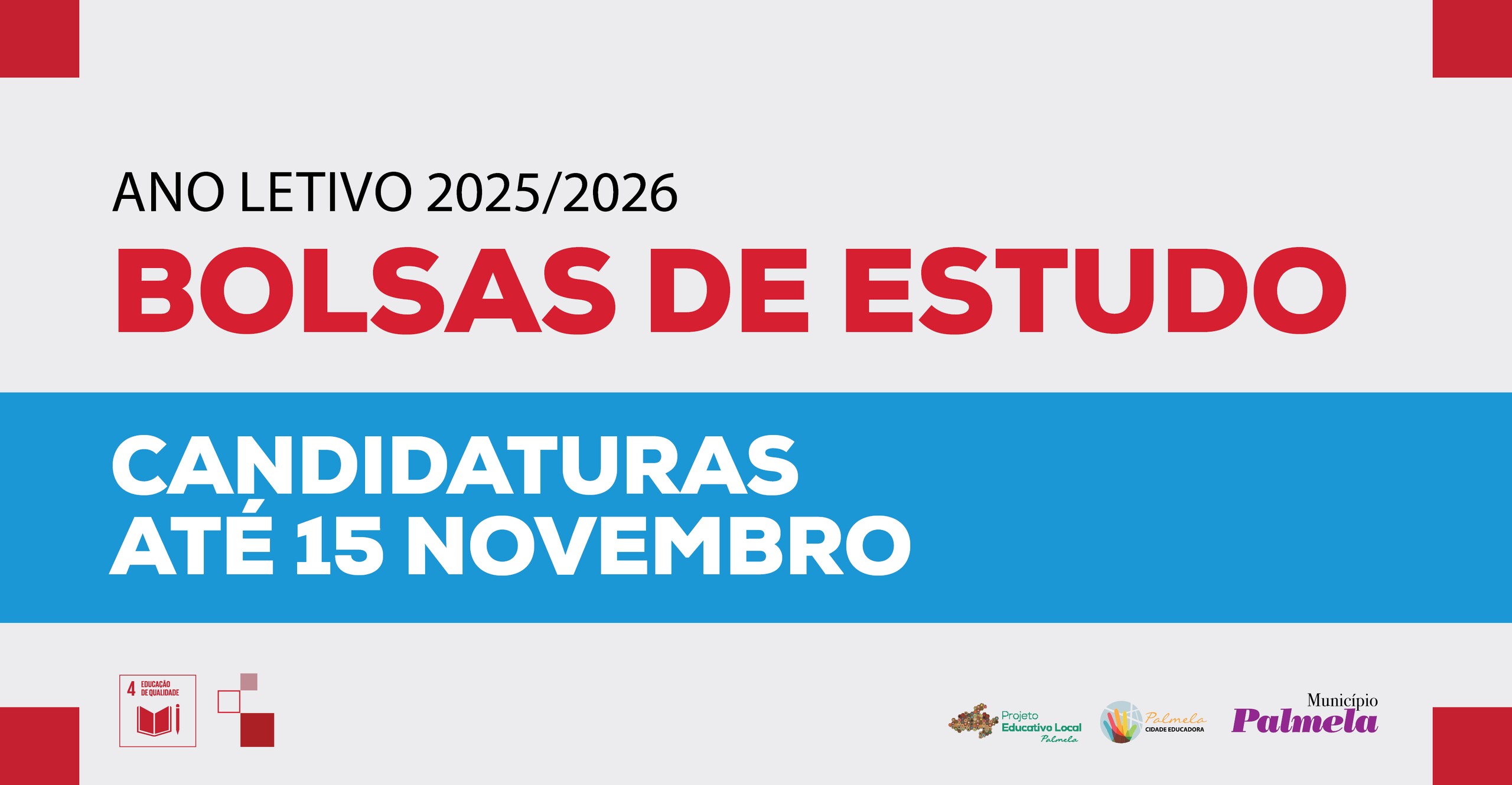 Estão a decorrer, até 15 de novembro, as candidaturas às Bolsas de Estudo a atribuir pelo Município de Palmela no ano letivo 2025/2026.