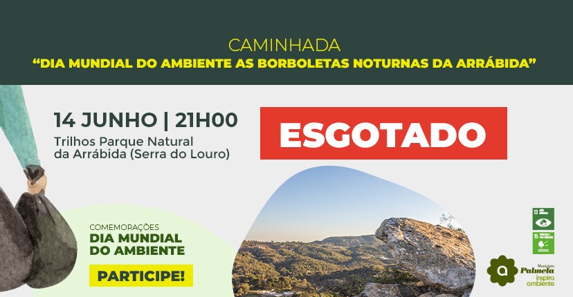As inscrições para a Caminhada Desportiva “Dia Mundial do Ambiente – As Borboletas Noturnas da Arrábida”, no dia 14 de junho, às 21h00, estão esgotadas.
