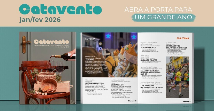 2026 chega com uma agenda recheada de experiências imperdíveis em Palmela. Cultura, gastronomia, desporto e atividades para todas as idades marcam os primeiros meses do ano, convidando residentes e visitantes a viver o concelho de forma intensa. Consulte todas as sugestões no Catavento - Agenda de Acontecimentos do Concelho de Palmela.