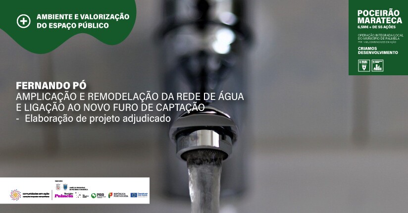 Trata-se de um investimento de 21.525€ , com prazo de execução de 45 dias, que tem como objetivos principais aumentar a produção de água para abastecimento à União das Freguesias de Poceirão e Marateca e definir as condições de ligação e equipamentos que permitirão ligar o novo furo de captação de Fernando Pó à atual estação elevatória e de tratamento.