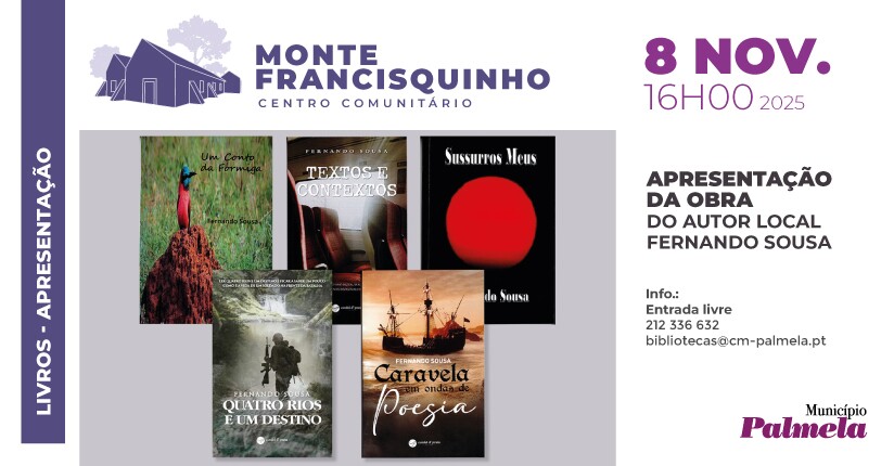 O Centro Comunitário Monte do Francisquinho, em Pinhal Novo, vai acolher a sessão de apresentação da obra de Fernando Sousa, no dia 8 de novembro, às 16h00.