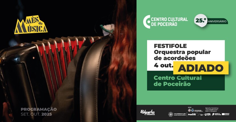 A iniciativa “Festifole”, que estava agendada para 4 de outubro, às 15h00, no Centro Cultural de Poceirão, no âmbito do “Outubro - Mês da Música”, foi adiada para nova data a anunciar em breve.