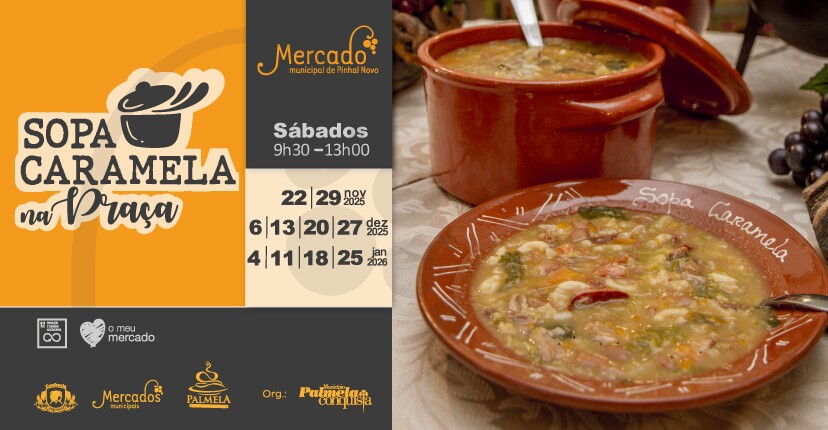 A partir de 22 de novembro, o Mercado Municipal de Pinhal Novo volta a receber a iniciativa “Sopa Caramela na Praça”, que decorre até 31 de janeiro de 2026, aos sábados, entre as 9h30 as 13h30.