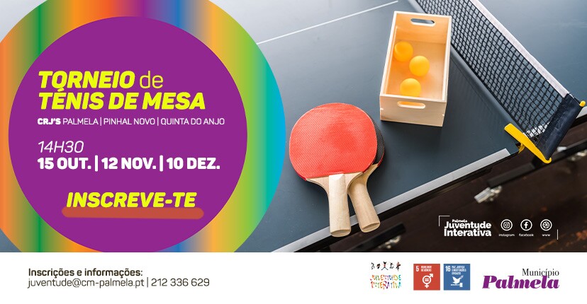 Os Centros de Recursos para a Juventude (CRJ) de Pinhal Novo, Quinta do Anjo e Palmela promovem, de outubro a dezembro, três Torneios de Ténis de Mesa.