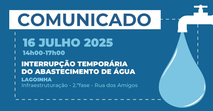 Devido à conclusão dos trabalhos de infraestruturação da Lagoinha - 2.ª fase - Rua dos Amigos, o abastecimento de água será temporariamente interrompido no dia 16 de julho, no período entre as 14h00 e as 17h00.