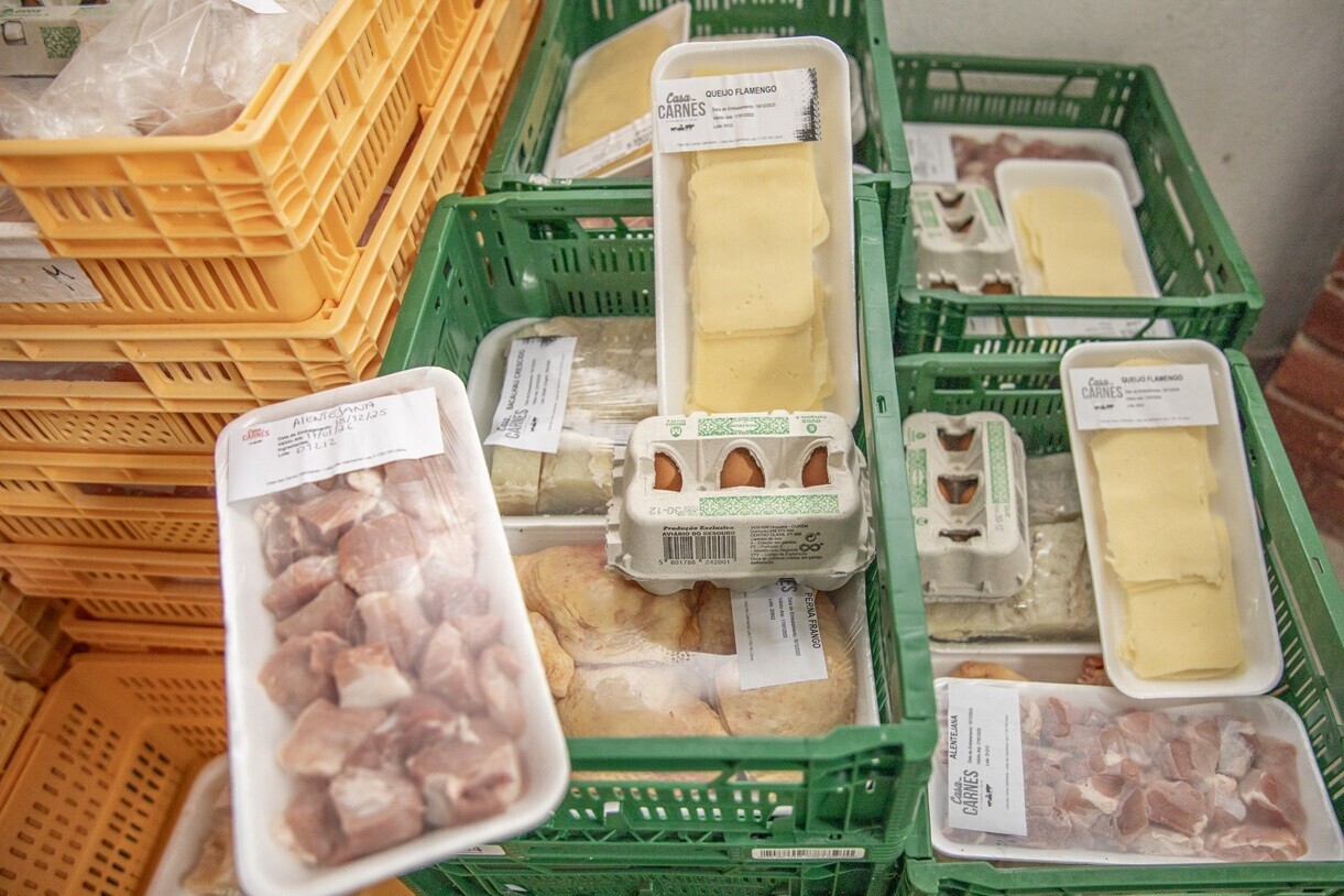 Os cabazes são constituídos, essencialmente, por produtos à base de proteína animal (carne de aves) e, nesta última edição do ano, também por bacalhau.