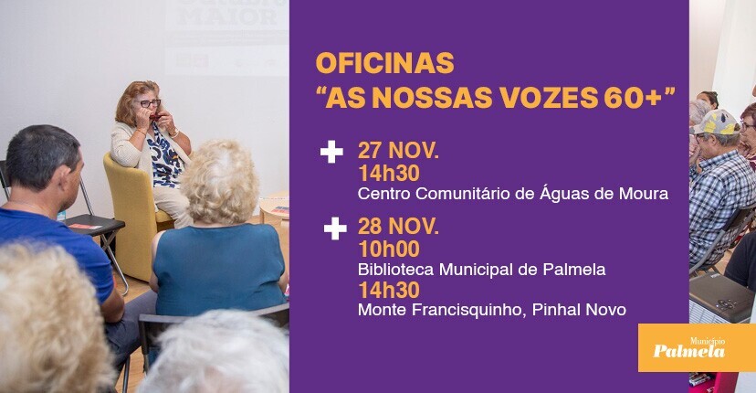 O Município de Palmela promove, esta semana, as Oficinas “As Nossas Vozes 60+”, em Palmela, Águas de Moura e Pinhal Novo.