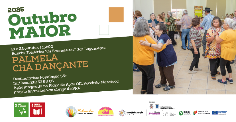 Inserida na programação do “Outubro MAIOR” – que assinala o Dia Internacional das Pessoas Idosas no concelho, ao longo do mês - esta atividade proporciona música, um pé de dança e lanche à população 55+anos, num ambiente acolhedor que sublinha as memórias e vivências das pessoas de mais idade, como importante legado para o reforço da identidade rural do território de Poceirão e Marateca, segundo os objetivos do projeto “RuralIDADES”, integrado na Operação Integrada Local (OIL) de Poceirão e Marateca.