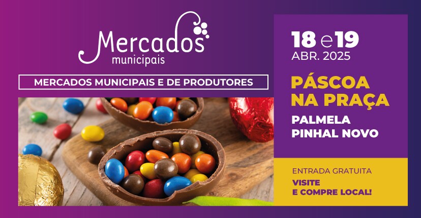 Nos dias 18 e 19 de abril, há “Páscoa na Praça” nos Mercados Municipais e de Produtores de Palmela e de Pinhal Novo, com entrada gratuita.
