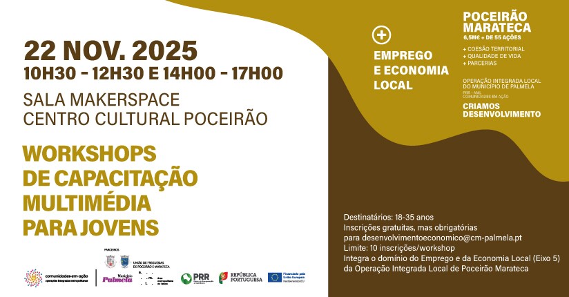 Esta iniciativa - promovida pelo Município de Palmela, no âmbito do projeto Ações de Capacitação para Jovens (Upskilling) que integra o domínio do Emprego e da Economia Local (Eixo 5) da Operação Integrada Local (OIL) de Poceirão Marateca, com financiamento do PRR – tem inscrições gratuitas e destina-se a jovens entre os 18 e os 35 anos.