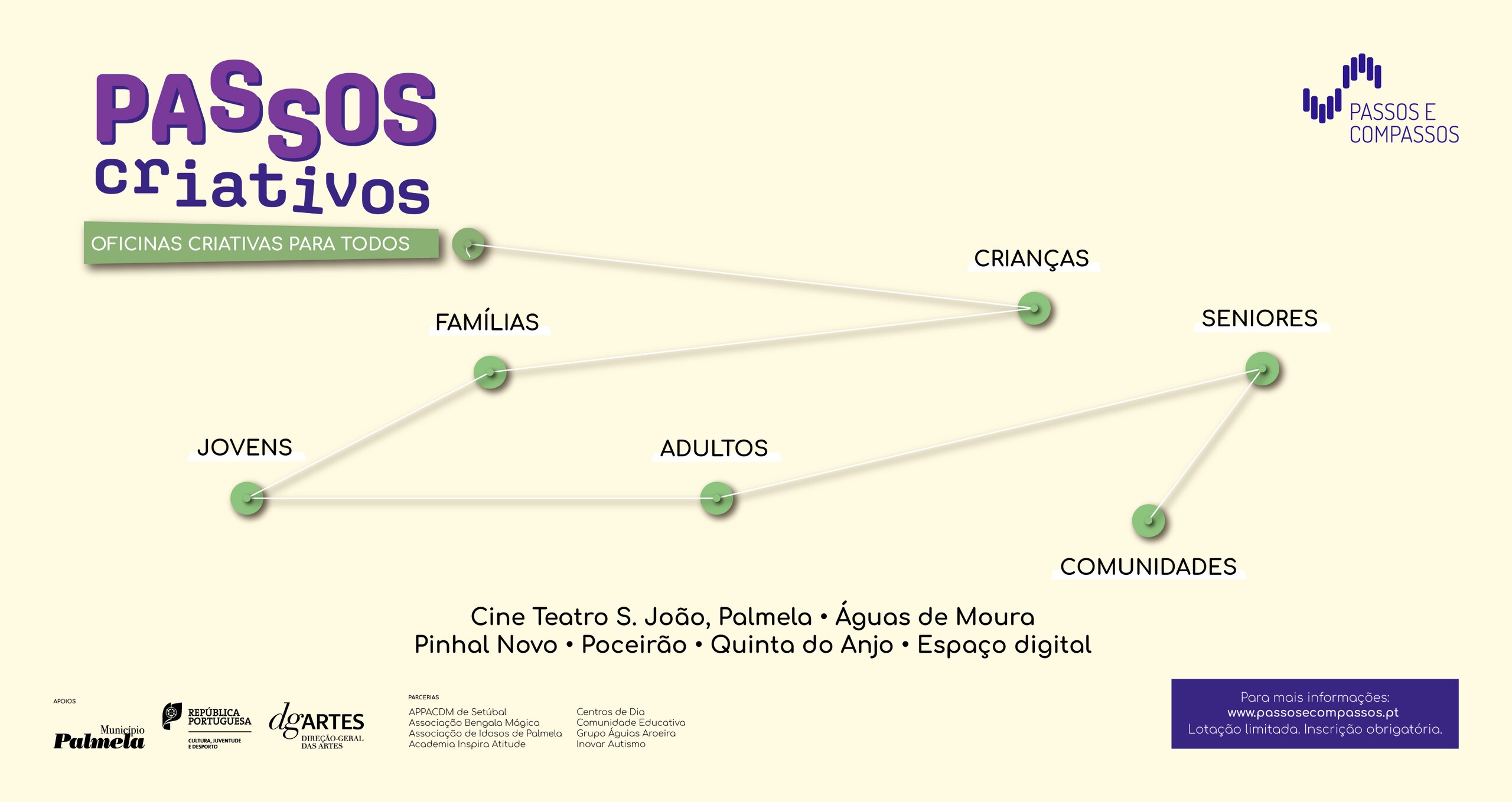 As atividades têm lotação limitada e a inscrição é obrigatória. Mais informações e inscrições: geral@passosecompassos.pt, 212 336 630 ou www.passosecompassos.pt