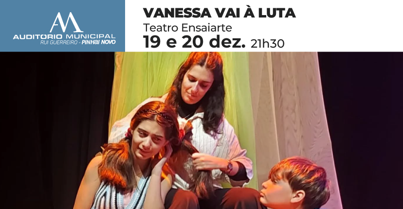 O Teatro Ensaiarte apresenta o espetáculo “Vanessa Vai à Luta” nos dias 19 e 20 de dezembro, às 21h30, no Auditório Municipal de Pinhal Novo – Rui Guerreiro.
