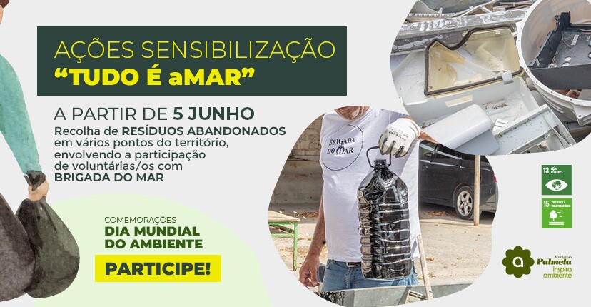 A Associação Brigada do Mar e o Município de Palmela promovem a 4.ª edição da iniciativa de recolha de resíduos abandonados “Tudo é aMar”. A campanha deste ano tem início no dia 5 de junho, no âmbito do programa comemorativo do Dia Mundial do Ambiente. Esta ação está também inscrita na plataforma World Environment Day, divulgada pela Agência Portuguesa do Ambiente.