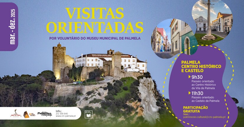 Orientadas por António Lameira, voluntário do Museu Municipal de Palmela, vão realizar-se a 1 de março, 5 de abril, 3 de maio, 7 de junho, 5 de julho, 6 de setembro, 4 de outubro, 1 de novembro e 6 de dezembro. Às 9h30, tem início o passeio orientado ao Centro Histórico (ponto de encontro no Chafariz de D.ª Maria I), seguindo-se a visita ao Castelo (ponto de encontro na Praça de Armas), às 11h30, com duração de 1h30 em cada período.