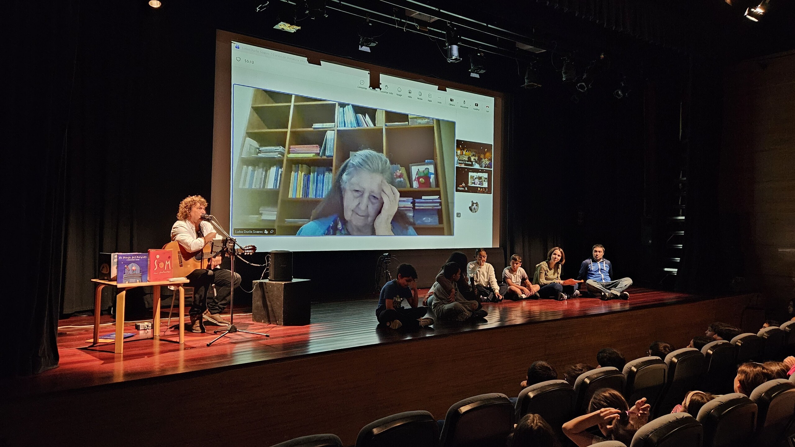 Daniel Completo partiu de textos de Luísa Ducla Soares para compor as músicas originais que interpretou e, ao longo da iniciativa, a escritora, por videoconferência, respondeu às inúmeras perguntas dos/as alunos/as presentes. ,