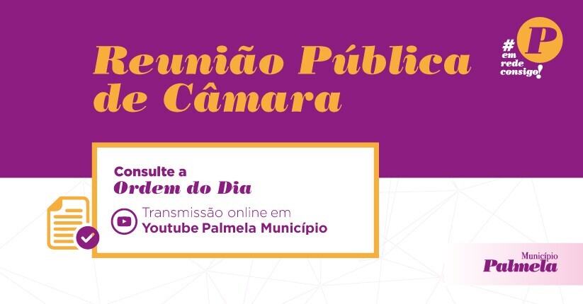 A Câmara Municipal de Palmela realiza uma reunião pública no dia 5 de fevereiro, às 19h00, no Auditório da Biblioteca Municipal de Palmela, com a seguinte ordem de trabalhos: