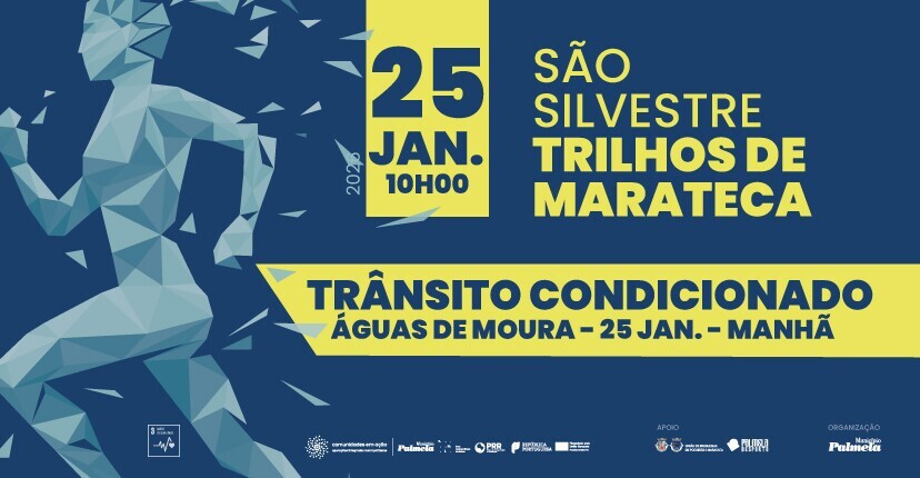 No âmbito da realização da Prova de Corrida e Caminhada “São Silvestre Trilhos de Marateca”, a circulação automóvel será cortada em Águas de Moura, no dia 25 de janeiro de manhã, nos seguintes locais e horários: