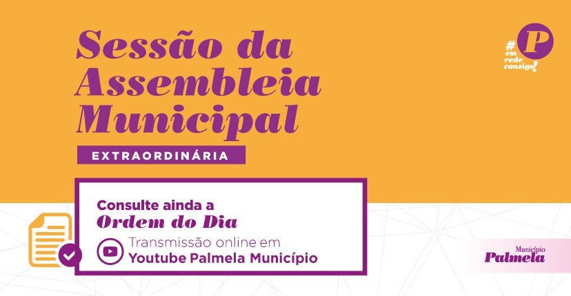 A Assembleia Municipal de Palmela realiza uma sessão pública extraordinária no dia 15 de janeiro, às 20h30, no Auditório da Biblioteca Municipal de Palmela, com a seguinte ordem de trabalhos: