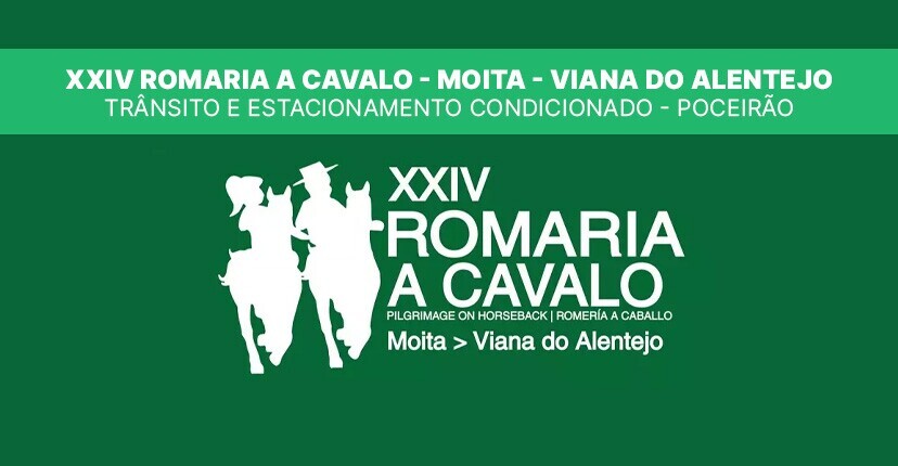 A XXIV Romaria a Cavalo Moita – Viana do Alentejo motivará condicionamentos de trânsito na freguesia de Poceirão no próximo dia 21 de abril.