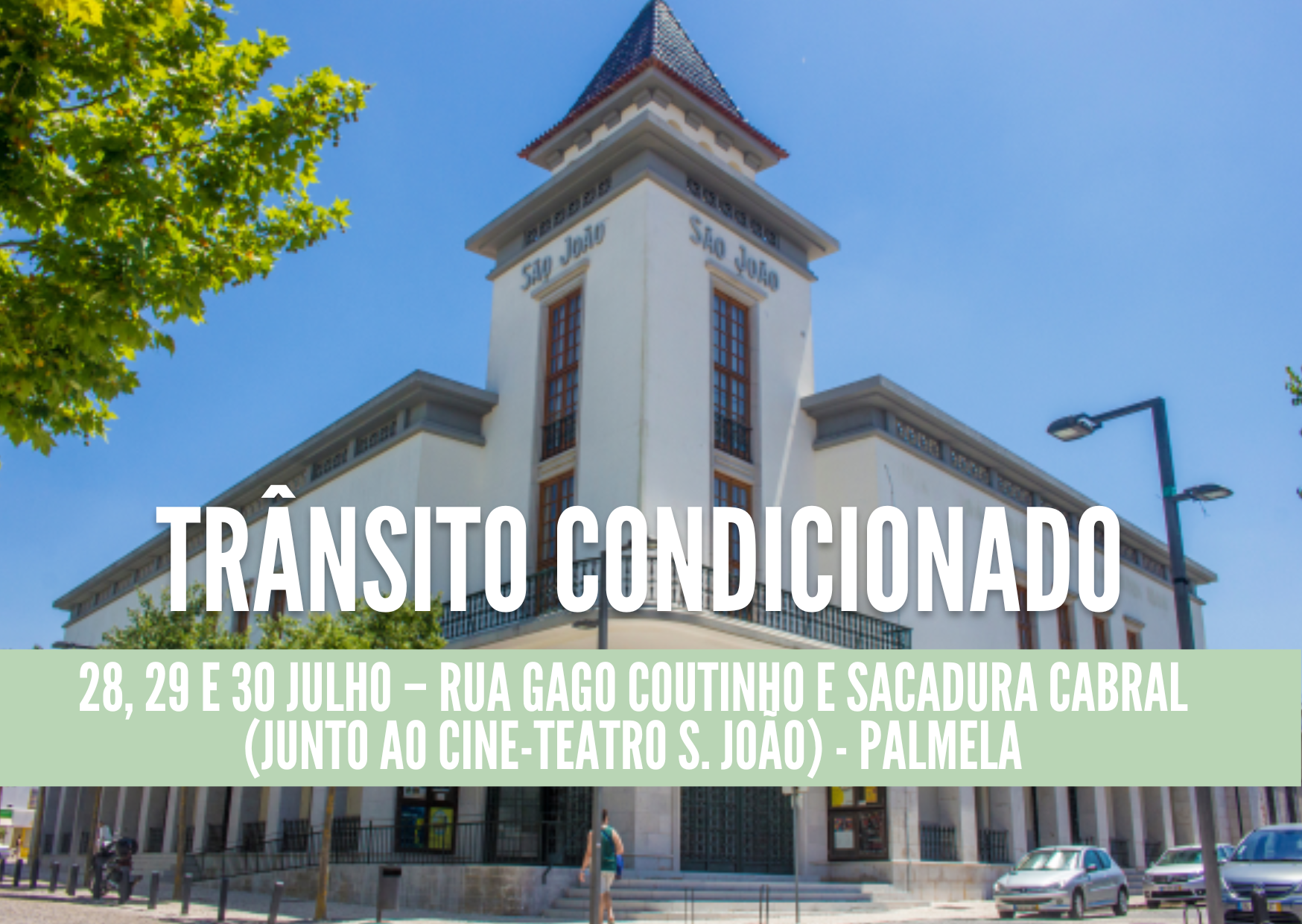 No âmbito das comemorações do 70.º Aniversário do Cine-Teatro S. João, em Palmela, a decorrer, será proibido o estacionamento de veículos e cortada a circulação de trânsito nos dias 28, 29 e 30 de julho, nos seguintes locais e horários: