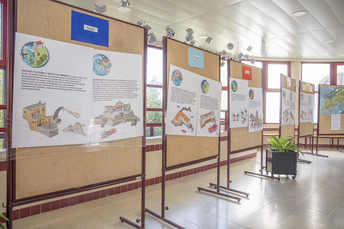 As/os alunas/os tiveram também a oportunidade de explorar os mapas físicos de cenários e perigos climáticos, integrados na exposição da ENA sobre o PLAAC, temporariamente instalada na escola, bem como o mapa digital, com conteúdos interativos e gamificados (Mapa das Alterações Climáticas no território Arrábida (genial.ly). Na ocasião, as/os alunas/os ficaram a saber mais sobre o clima atual e o que se espera que seja no futuro, quais os perigos climáticos de Palmela e onde serão mais relevantes e, por último, algumas das medidas de adaptação que podem ser implementadas.