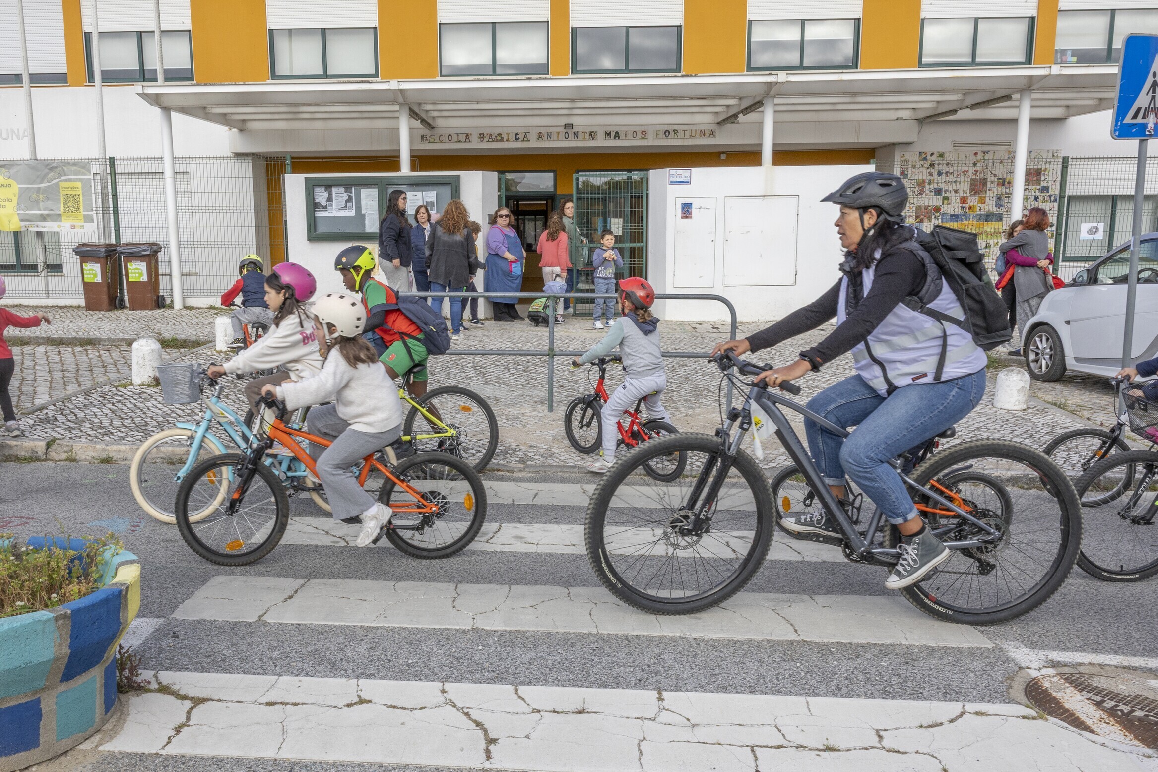 A presidente da Câmara Municipal de Palmela, Ana teresa Vicente, deu esta terça-feira a partida ao primeiro Comboio de Bicicletas de 2026 para levar miúdas e miúdos à escola na Quinta do Anjo.