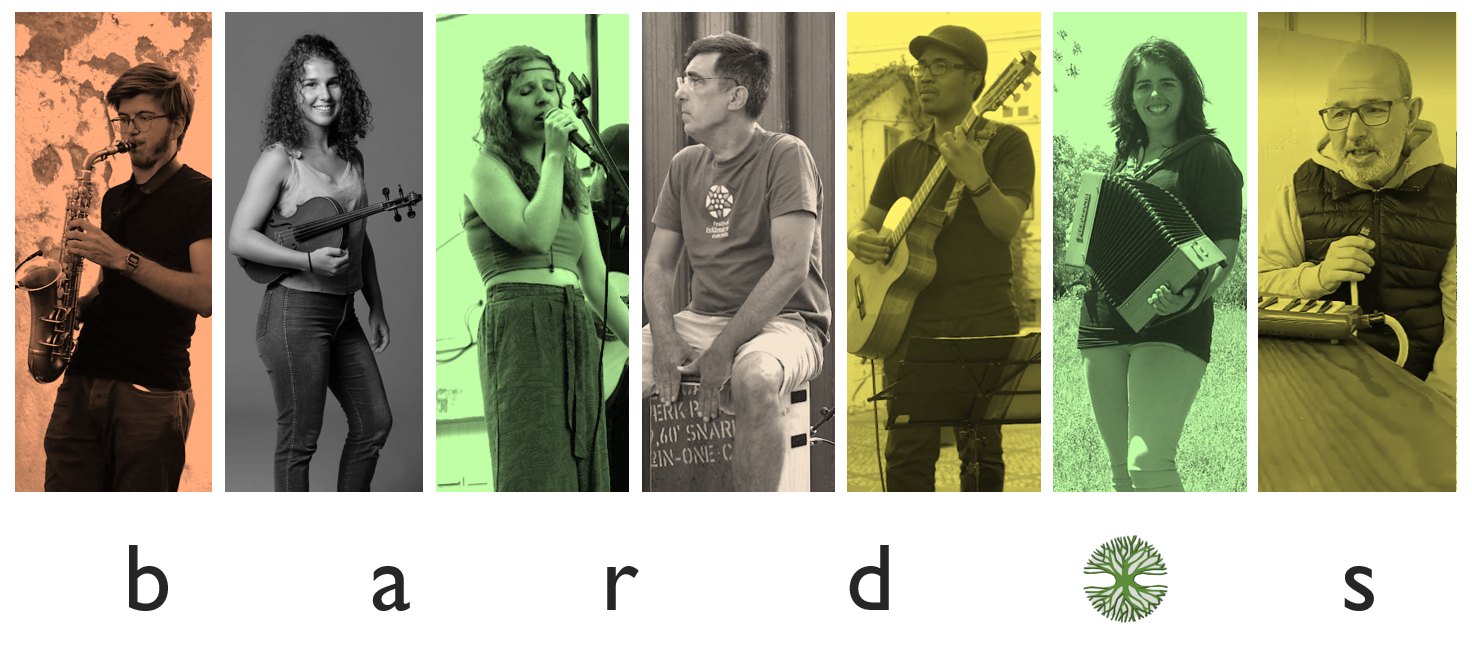 João Santos (saxofone), Ana Sofia Rodrigues (violino), Lara Loureiro (voz), José Viegas (percussão), Jorge Wong (guitarra), Joana Oliveira (concertina e adufe) e Joaquim (maestro e compositor) dão corpo aos “Bardos”.