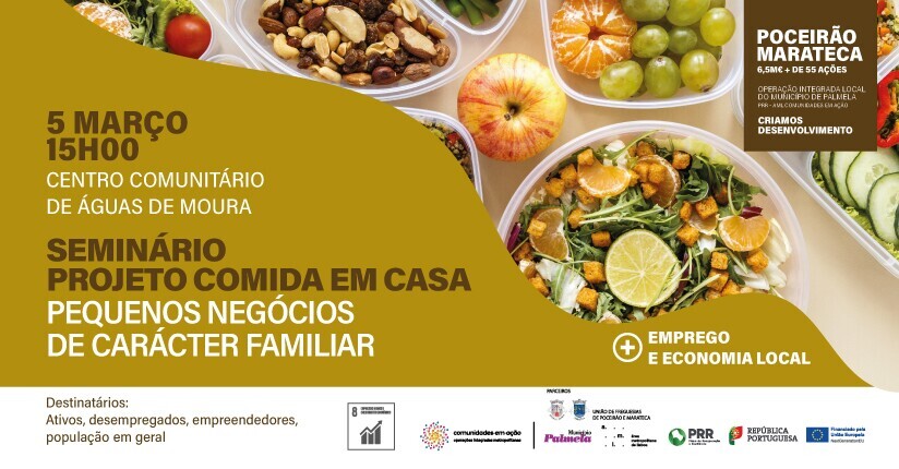 A Comida em Casa - Pequenos Negócios de Carácter Familiar é o tema de um seminário que a Câmara Municipal de Palmela realiza, no próximo dia 5 de março, às 15h00, no Centro Comunitário de Águas de Moura. Trata-se de uma iniciativa inserida no Eixo 5 – Emprego e Economia Local da Operação Integrada Local (OIL) Poceirão e Marateca, que visa incentivar o empreendedorismo e a economia de proximidade.