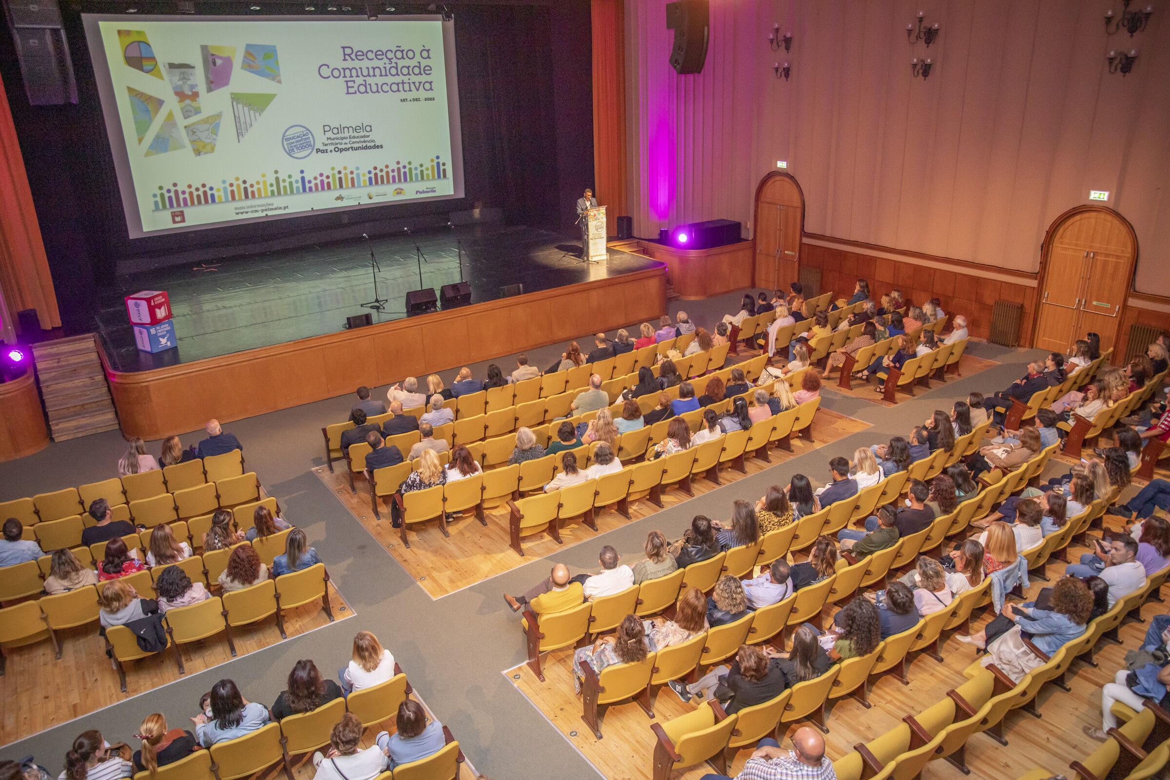 O Momento de Convívio da RCE - Receção à Comunidade Educativa 2022/2023 juntou, a 28 de setembro, no Cine-Teatro S. João, em Palmela, diretoras/es de Agrupamento e de Escola, professoras/es, educadoras/es, auxiliares, alunas/os, famílias e autarcas, num espírito de festa, alegria, reencontro e acolhimento para quem chega de novo.