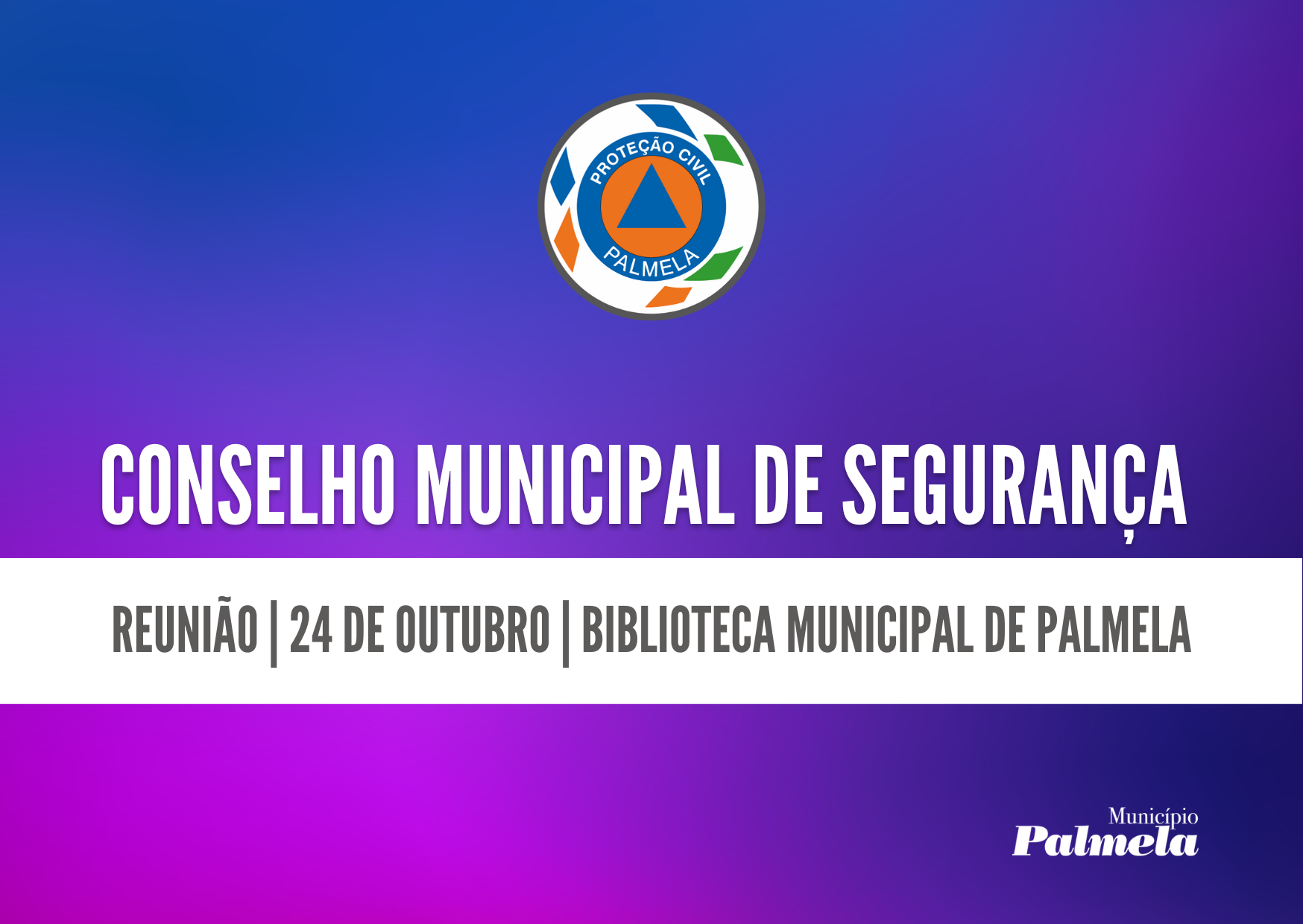 O Conselho Municipal de Segurança reúne dia 24 de outubro, às 17h00, na Biblioteca Municipal de Palmela.