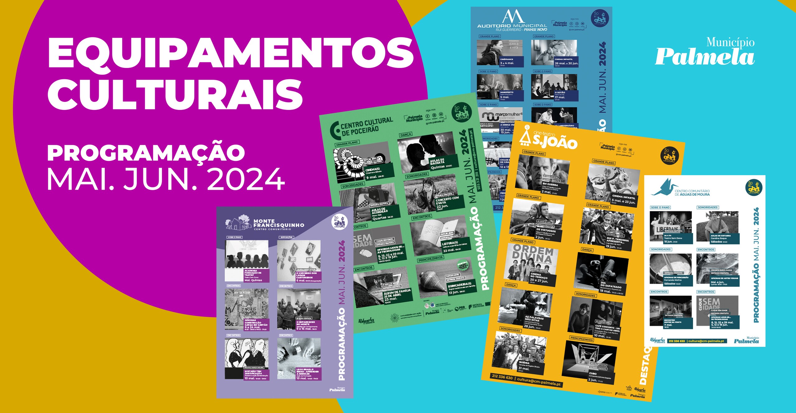 Conheça toda a programação do Cine-Teatro S. João (Palmela), Auditório Municipal de Pinhal Novo - Rui Guerreiro, Centro Comunitário Monte do Francisquinho (Pinhal Novo), Centro Cultural de Poceirão e Centro Comunitário de Águas de Moura e planeie já os seus tempos livres!