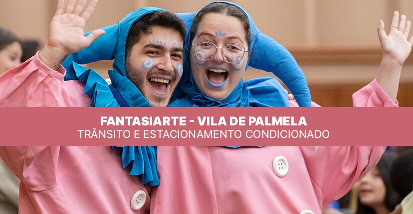 A realização do evento cultural «Fantasiarte – Vila de Palmela» motiva a proibição de estacionamento de veículos nas ruas Gago Coutinho e Sacadura Cabral e Infante D. Henrique em várias datas de abril e maio de 2026.