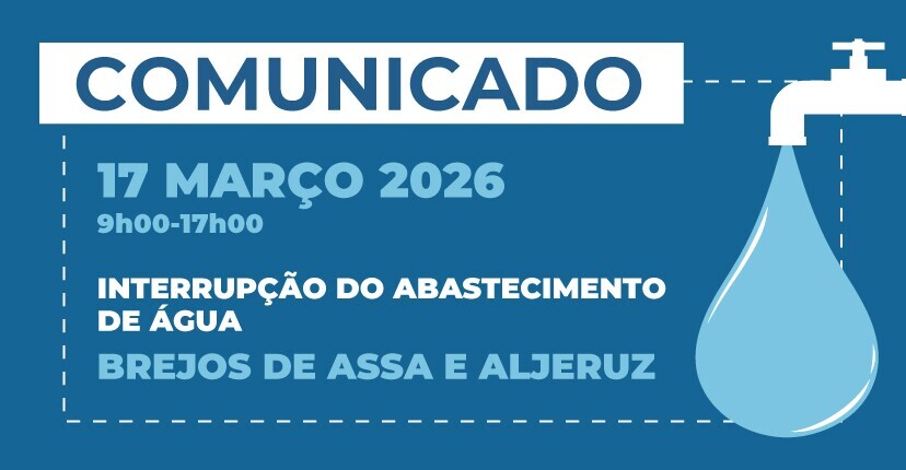 A água poderá faltar nas zonas de Brejos do Assa e Algeruz previsivelmente entre as 9h00 e as 17h00 de 17 de março devido aos trabalhos necessários de obras para beneficiação do sistema eletromecânico responsável por garantir a pressão nesta rede.