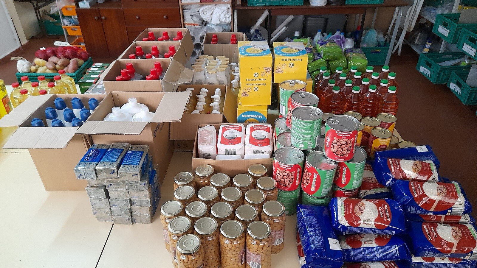 Os bens (açúcar, arroz, azeite, óleo, vinagre, farinha láctea para bebés, feijão e grão e produtos de higiene pessoal e de limpeza do lar) foram doados pela loja de Palmela do grupo SONAE-MC.