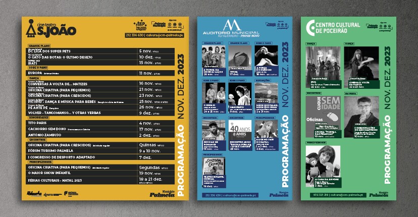 No Cine-Teatro S. João (Palmela), assista também ao filme vencedor do Prémio do Público MOTELX 2023 “Irati” (15 novembro), à peça de teatro “Europa”, pelos Artistas Unidos (11 novembro), ao espetáculo de dança “Volver - Tangomanso... Y Otras Yerbas” (9 dezembro), aos concertos de Tito Paris (4 novembro), Cachorro Sem Dono (17 novembro) e António Zambujo (2 dezembro) e participe no Fórum Turismo Palmela (9 e 10 novembro) e no I Congresso de Desporto Adaptado (7 dezembro). Para os mais novos, há o espetáculo “O Maior Show Infantil” (19 novembro) e as Férias Culturais - Natal 2023 (18 a 21 dezembro).