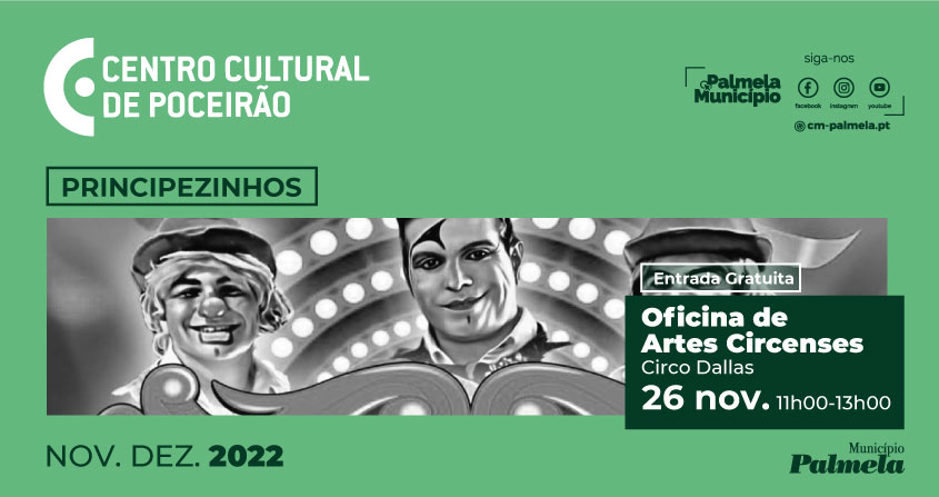 O Circo Dallas, uma das companhias mais antigas do país, residente no concelho de Palmela, dinamiza uma Oficina de Artes Circenses no Centro Cultural de Poceirão, no dia 26 de novembro, das 11h00 às 13h00.