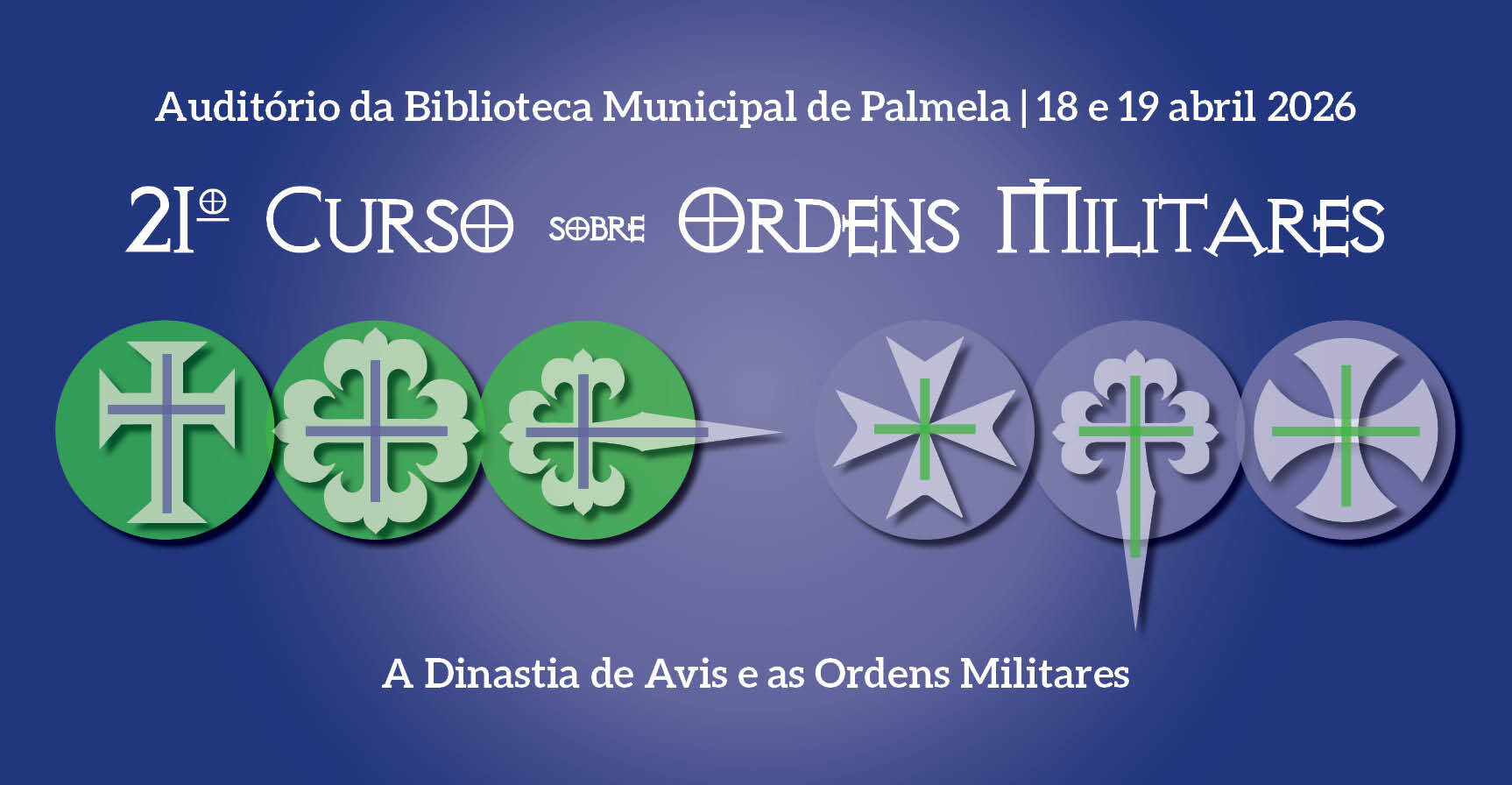 Organizado pelo Gabinete de Estudos sobre a Ordem de Santiago (GEsOS) da Câmara Municipal de Palmela, o curso estende-se pelos dias 18 e 19 de abril de 2026. O programa de sábado conta com comunicações de diversos especialistas que abordarão figuras centrais como D. Duarte, o Infante D. Fernando e D. Manuel I. O dia culminará com a apresentação da obra «As Ordens Militares. Do Convento e da Guerra para o Mundo».