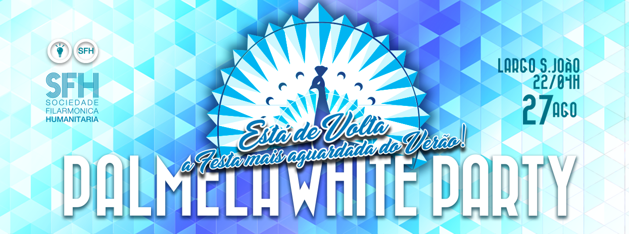 A Palmela White Party é organizada pela SFH - Sociedade Filarmónica Humanitária e conta com o apoio da Câmara Municipal de Palmela, Junta de Freguesia de Palmela e adegas da região. Mais informações: www.facebook.com/PalmelaWhiteParty