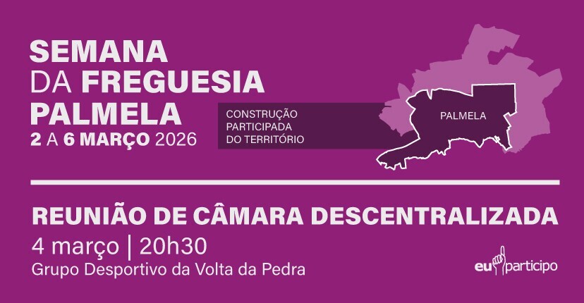A Câmara Municipal de Palmela realiza uma reunião pública descentralizada no dia 4 de março, às 20h30, Grupo Desportivo da Volta da Pedra, no âmbito da Semana da Freguesia de Palmela. A ordem de trabalhos é a seguinte: